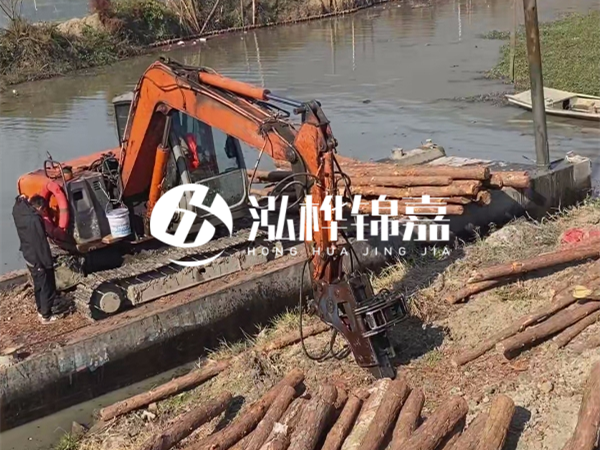 水挖(也就是水上挖掘機)的液壓錘功率直接決定能打多長的樁。普通 60 型水上挖掘機,液壓錘沖擊力有限,最多打到 5 米就很吃力了 —— 就像人用小錘子敲長釘子,容易把釘子敲彎。而大型 200 型以上的水挖,液壓系統(tǒng)能提供足夠的沖擊力和穩(wěn)定性,才能駕馭 8 米以上的長木樁。泓樺錦嘉能打 8 米木樁,首先靠的就是設(shè)備優(yōu)勢。他們用的是定制款水上挖掘機,液壓錘經(jīng)過改裝,沖擊力比常規(guī)設(shè)備提升 30%,而且機身配重更合理,在水面作業(yè)時減少晃動,避免長木樁因受力不均斷裂。